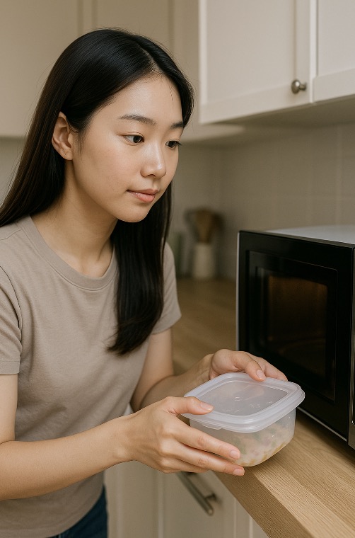 | PP 플라스틱 (폴리프로필렌) | 100~120℃ | 낮음 (단, PP 표기 없는 저가 플라스틱은 위험) | 가볍고 저렴, 전자레인지 전용 용기 다수 | 뚜껑 압력 파열·변형 발생 가능 |
