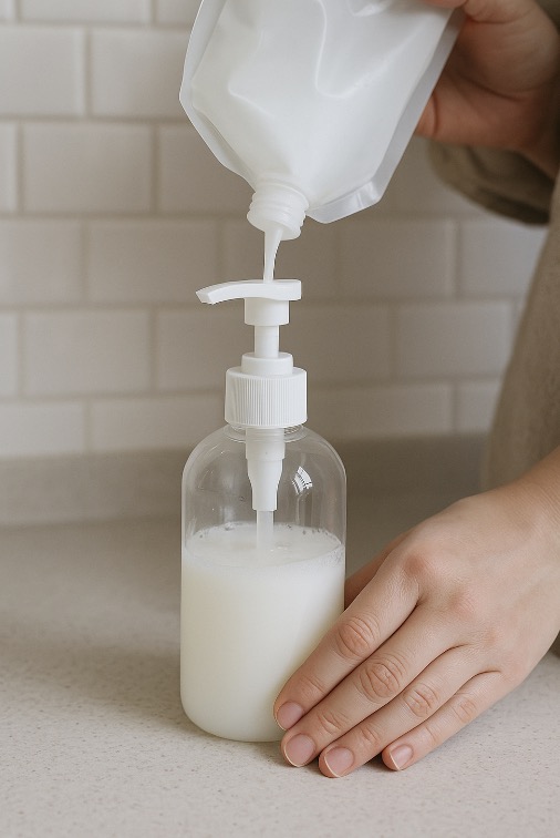 주방세제 🍽️: 펌프 헤드는 주 1회 뜨거운 물로 린스. 거품 펌프는 점도 낮은 타입 적합.